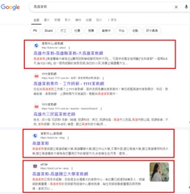 自然排序中第一排 前6名 我們網站排有3個位置(第一名+第三名+第四名)